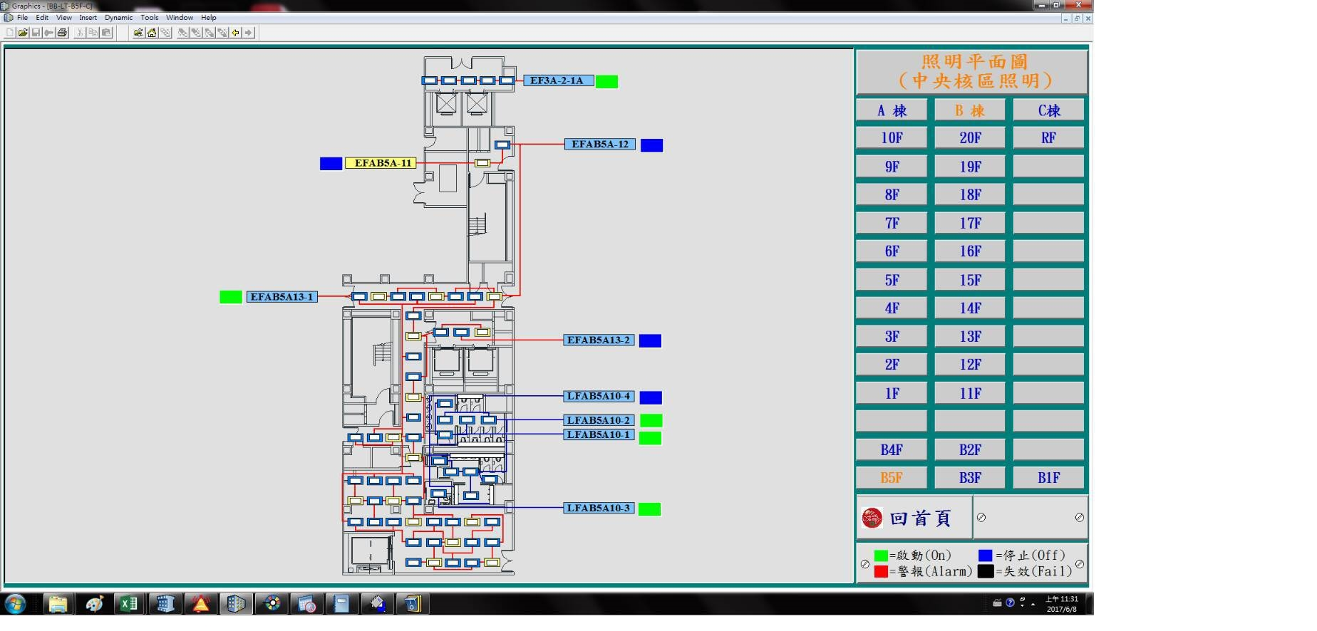 地下室 主要設施位置 設施位置A棟發電機房A棟 B2FB棟發電機房B棟 B2FB棟車道口、指標設備電源 NFBB棟 B2F B9電梯旁庫房(管中有鑰匙)A棟 B1F 電錶機房A棟 B1F(空氣清淨機存放處)地下室 CORE 區照明迴路詳見水電組/未命名 29 BC棟 B1F–B5F 電源 BC棟 B1F–B5F 及 1F 車道口、指標設備電源 NFB 位於 B棟 B2F B9 電梯旁庫房,管中有鑰匙。 相關頁面 發電機 污廢水系統 空氣清淨機 水電組筆記 原始筆記圖片