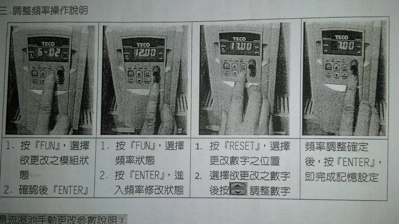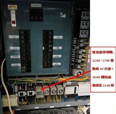 噴泉系統 A北噴泉 廠商 煦成電,電話:8647-1006 變頻器設定 噴頭高低壓區別由變頻器內存頻率控制: 6-02:低壓模式(目前預設) 6-03:高壓模式 A北噴泉調頻方法 詳見原始筆記圖片(水電組/未命名 80)。 A北景觀池變頻器 詳見水電組私/未命名 27。 P1公園旱噴泉 項目設定噴水時間09:00–18:00,每整點噴水 10 分鐘環形燈 & 條燈18:00–22:00 詳見原始筆記圖片(水電組/未命名 78)。 相關頁面 澆灌系統 P1公園 煦成電 水電組筆記 原始筆記圖片