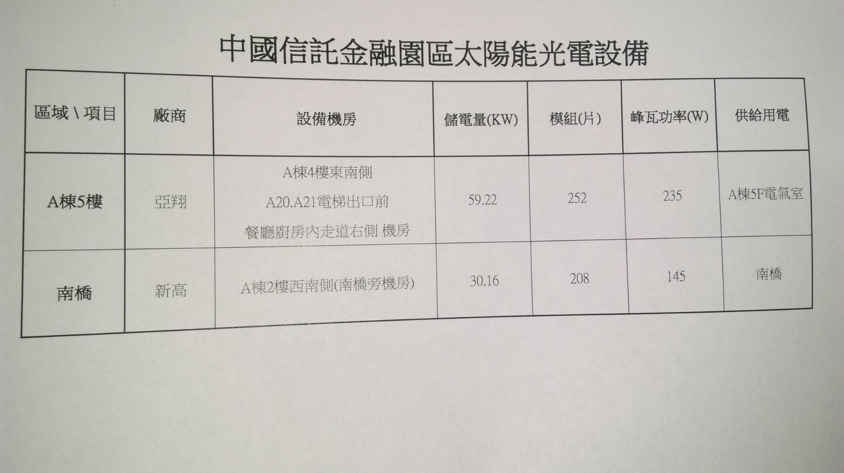 | 太陽能面板(次要) | A棟 4F 東南側(靠近員工餐廳) |
