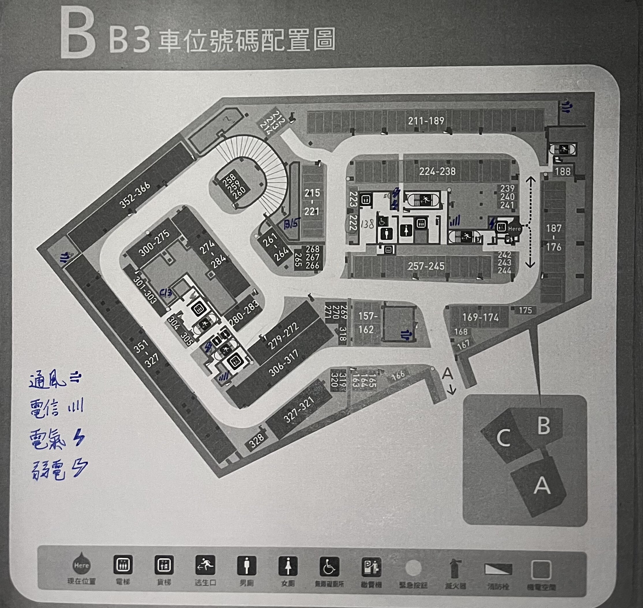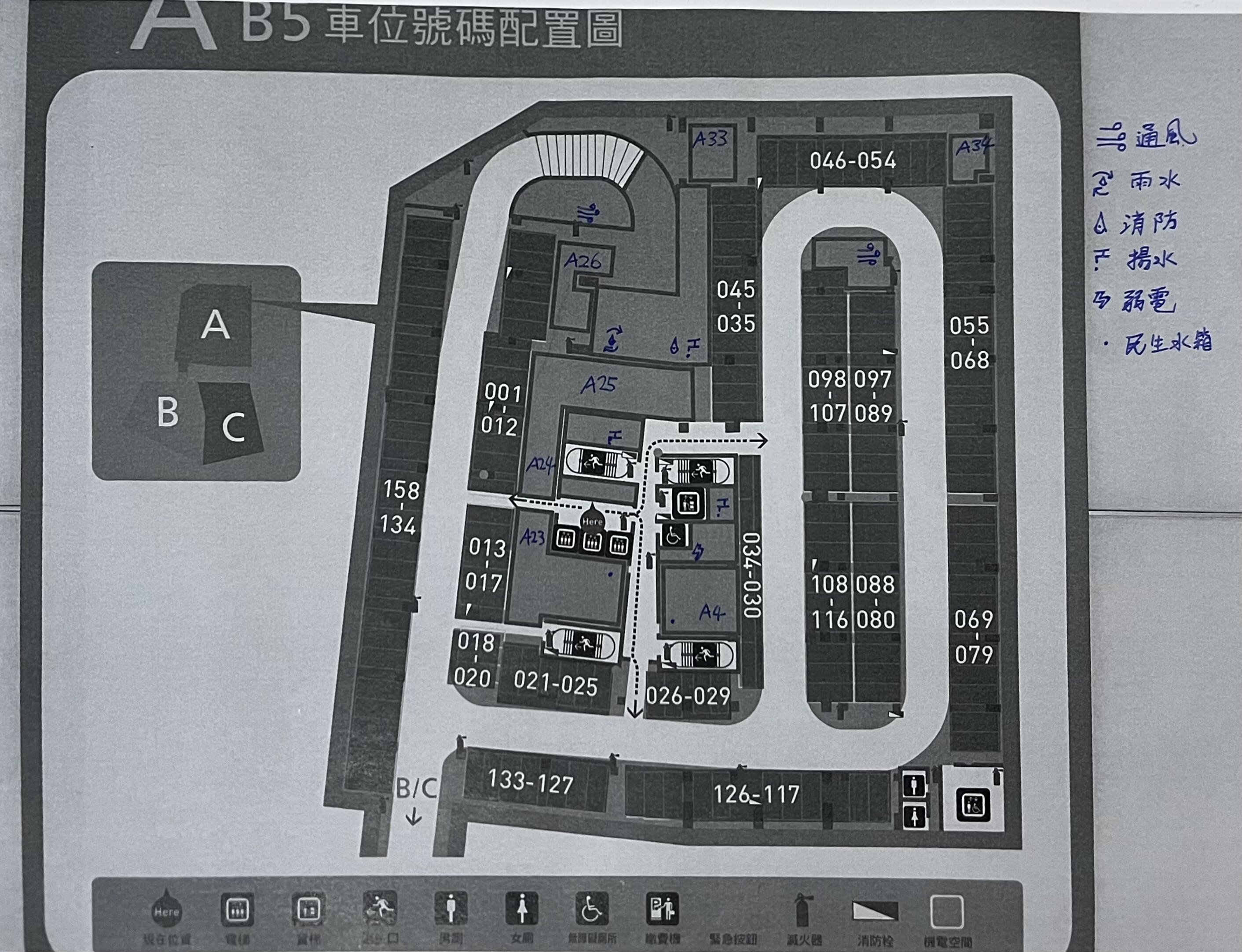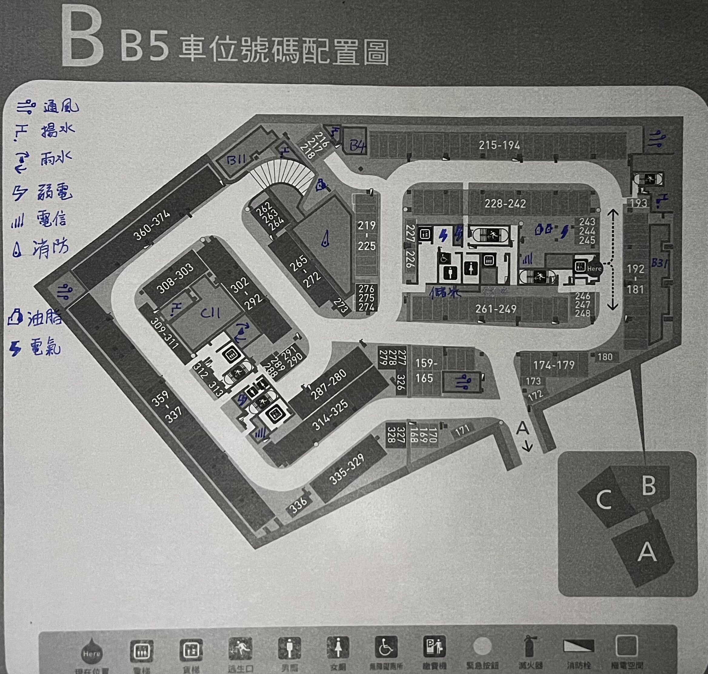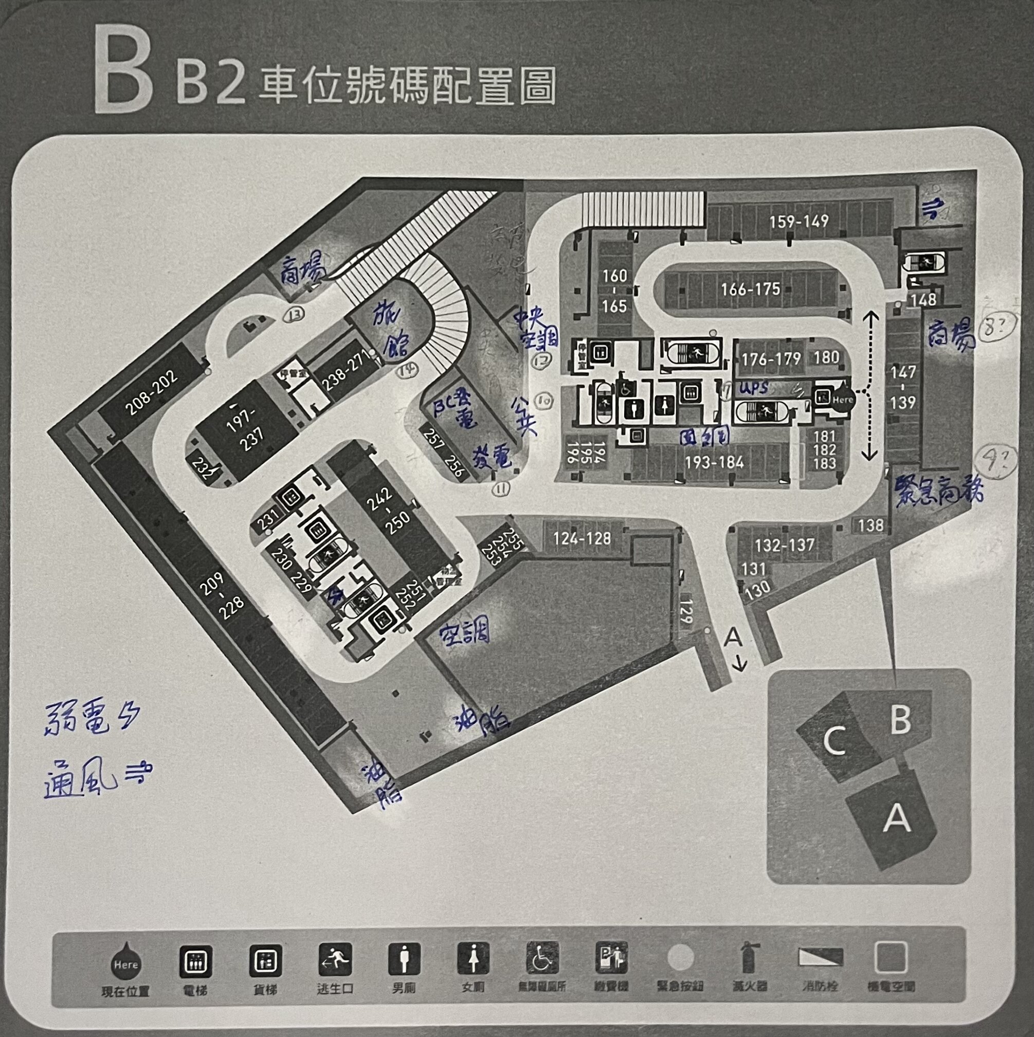 地下樓層機房位置圖(手繪標注照片集)