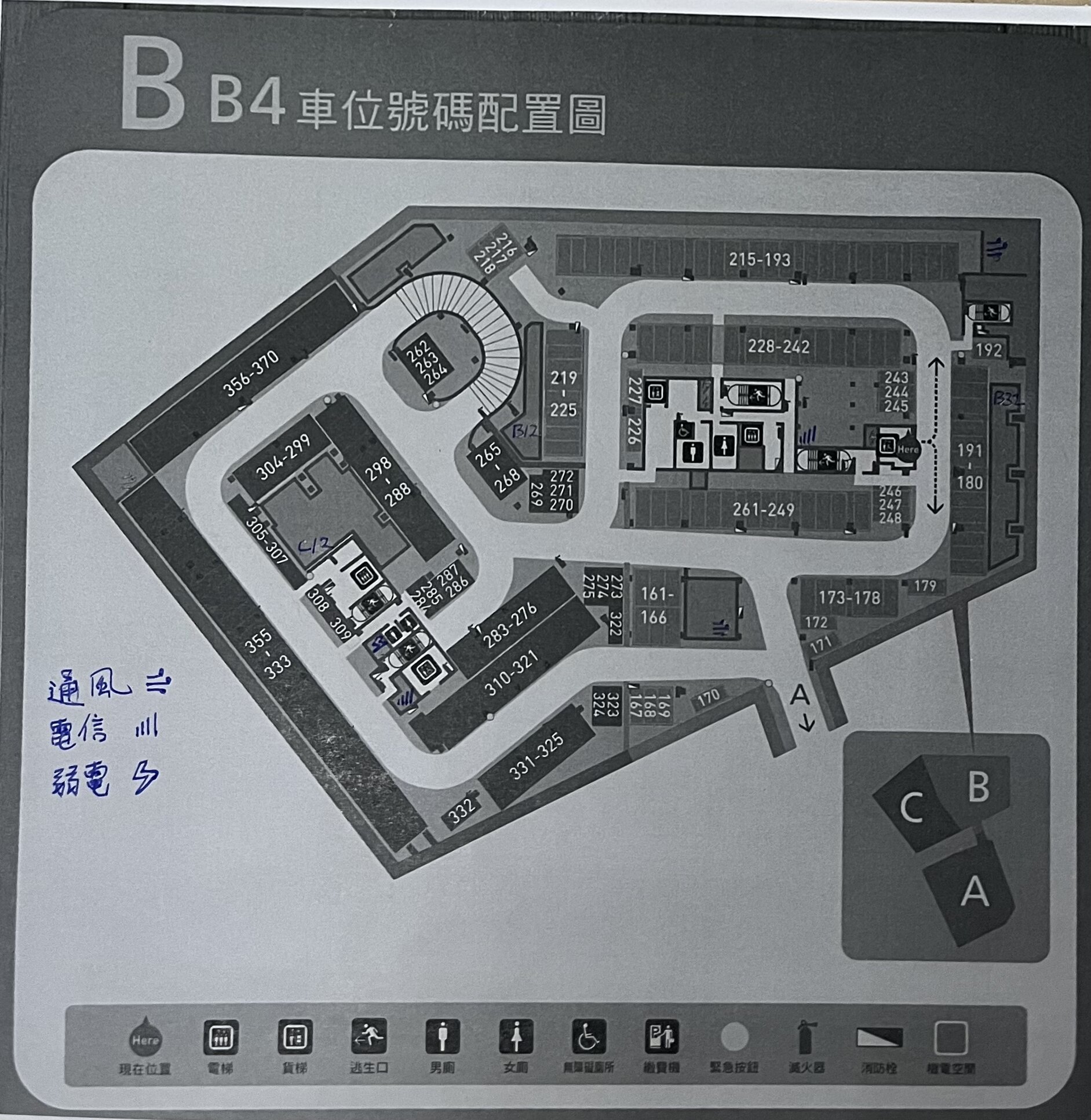 A棟 B4F 車位號碼配置圖